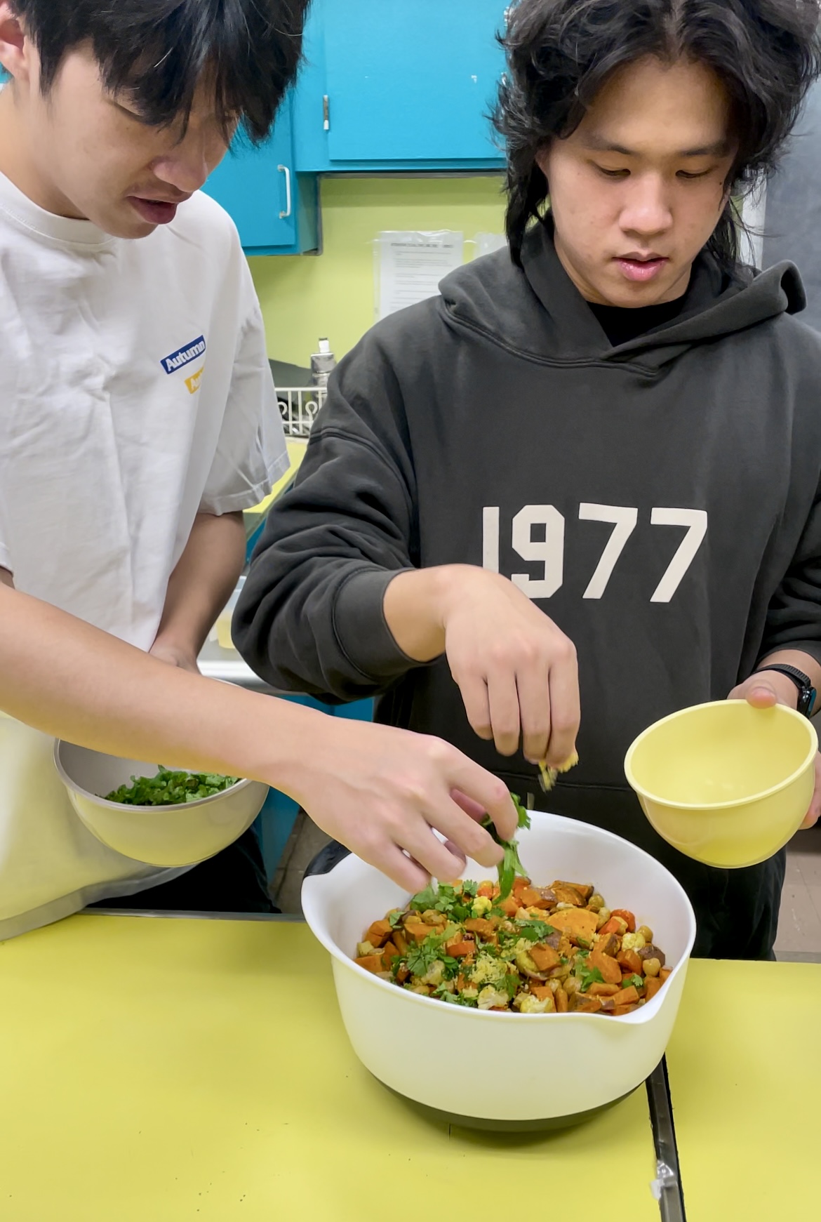 Teen athletes, especially those aspiring to play in college, benefit from learning how nutrition affects their energy, endurance and overall health. Our classes emphasize the nutrition-performance connections, highlighting teaching points such as macronutrients, hydration and recovery foods. In the past few months, students have cooked and shared meals like whole wheat energy cookies, spicy chickpea sushi and vegetarian Pastelón—dishes designed to support an active lifestyle, peak their interests and, of course, tastebuds! Their basketball coaches even integrated nutrition talking points into practice and workouts, reinforcing what they learned from our Chef Educators.