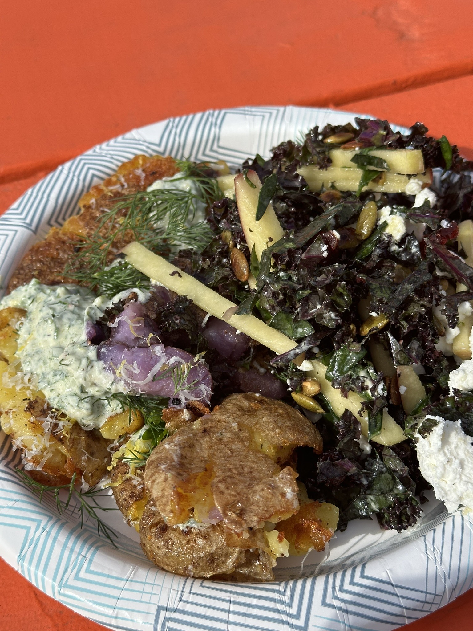 - Once all the potatoes are cooked, arrange evenly across a serving platter. Drizzle with the herby yogurt, and scatter with the Parmesan. Sprinkle over the remaining herbs and serve.