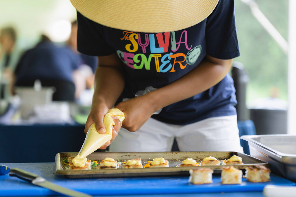 - Teen student prepares amuse bouches for The Sylvia Center’s Farm Event