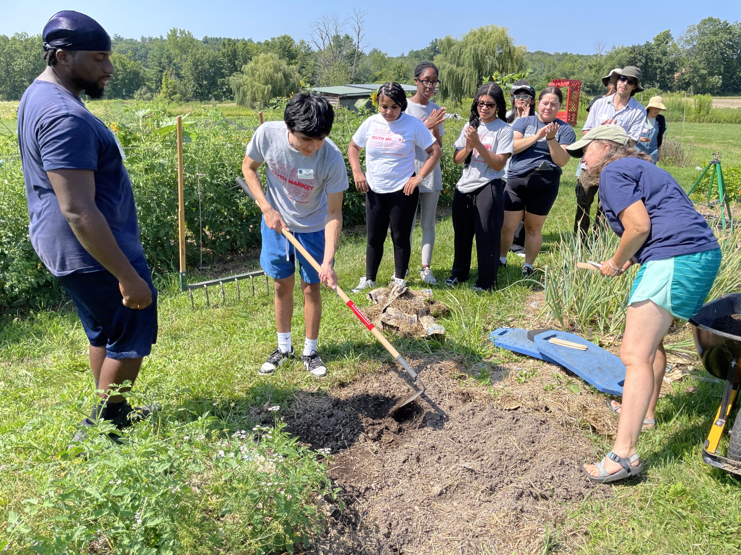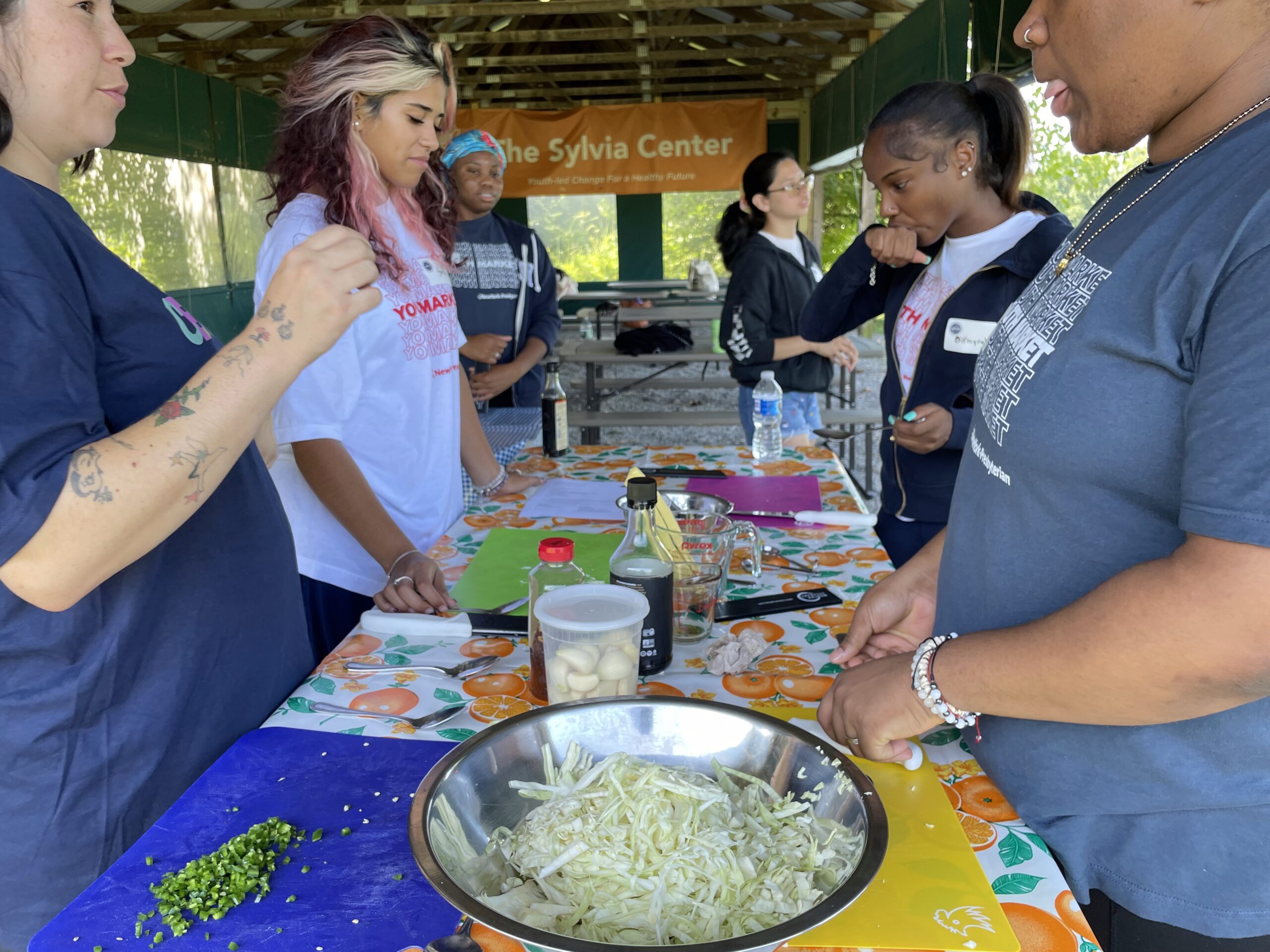 Last week, we welcomed students from the New York Presbyterian Youth Market program to TSC’s Learning Garden at Katchkie Farm for a hands-on day of harvesting and cooking. Using farm-fresh, hand-picked produce, they prepared Vietnamese noodle salad in our outdoor pavilion. This visit capped off a multi-week collaboration with the innovative NYC program that began with virtual knife skills and kitchen safety sessions led by TSC chefs, followed by in-person nutrition and food demo training. Our Work-Based Learning students joined as peer mentors, helping prepare NYP youth for their summer roles leading public food demos across NYC. Together, we’re building skills, confidence, and community through hands-on food education and youth leadership!