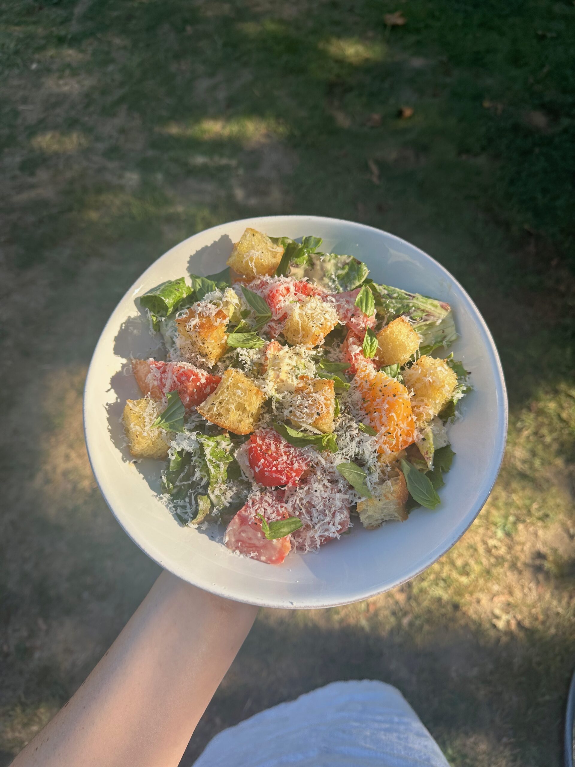 When tomatoes are at their peak, you don’t need to do much to them: they’re sweet, bursting with juices, and are surprisingly complex (nothing like the pale supermarket tomatoes you can buy year-round). This simple salad shows them off perfectly. A fresh twist on a classic Caesar, it shines a spotlight on juicy summer tomatoes, supported by crisp romaine and a creamy garlic dressing. Croutons optional! It’s budget-friendly, easy to throw together, and built entirely around what’s in season. Try it and let us know! Let us know if you try this at home + tag us @sylviacenter.