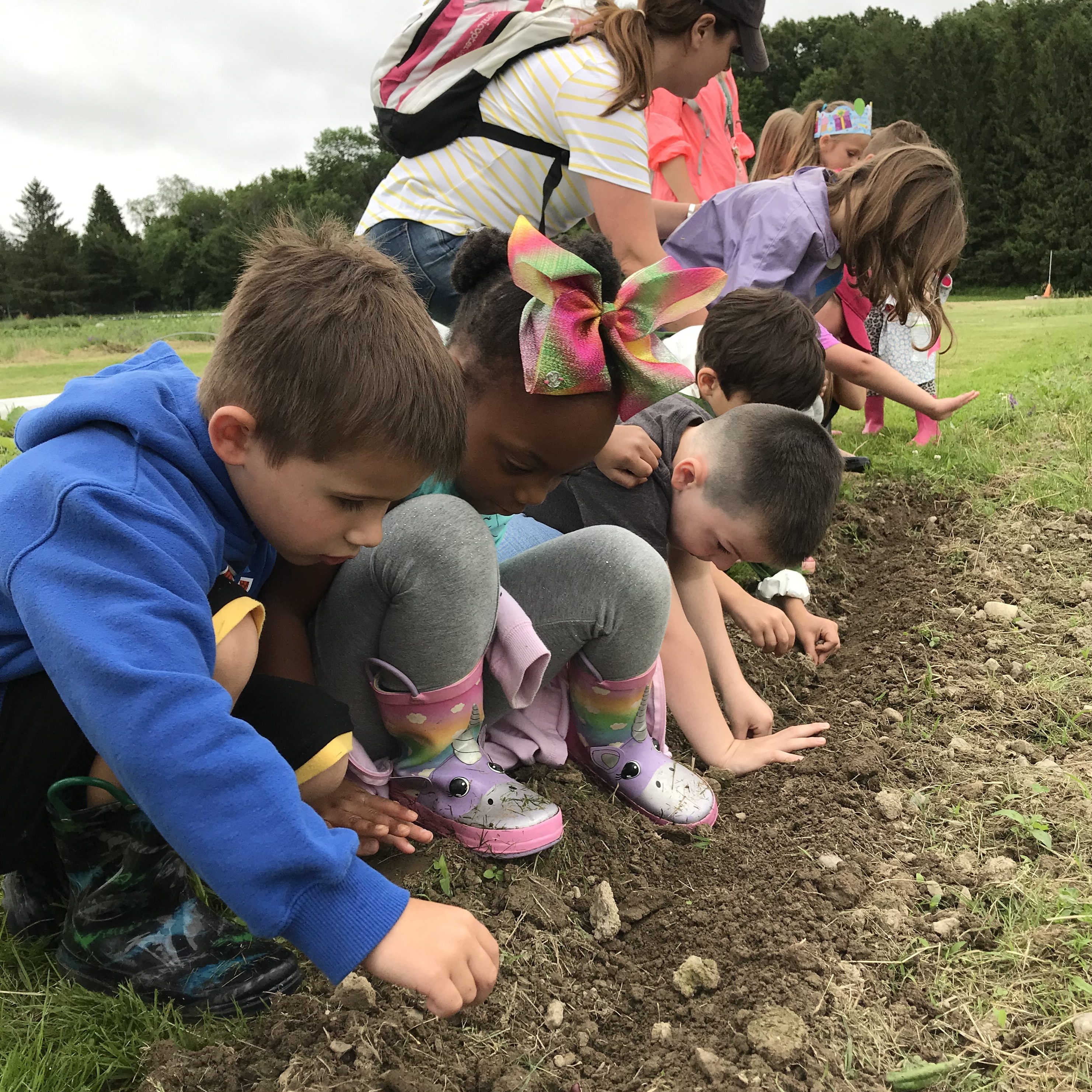 Germantown Pre-K visited Katchkie Farm where they took a tour of the greenhouse, Learning Garden, and visited the chickens. They discovered where whole food comes from while learning basic culinary skills. Pre-K schoolers planted bean seeds and made a spring orzo salad with spinach scape pistou.