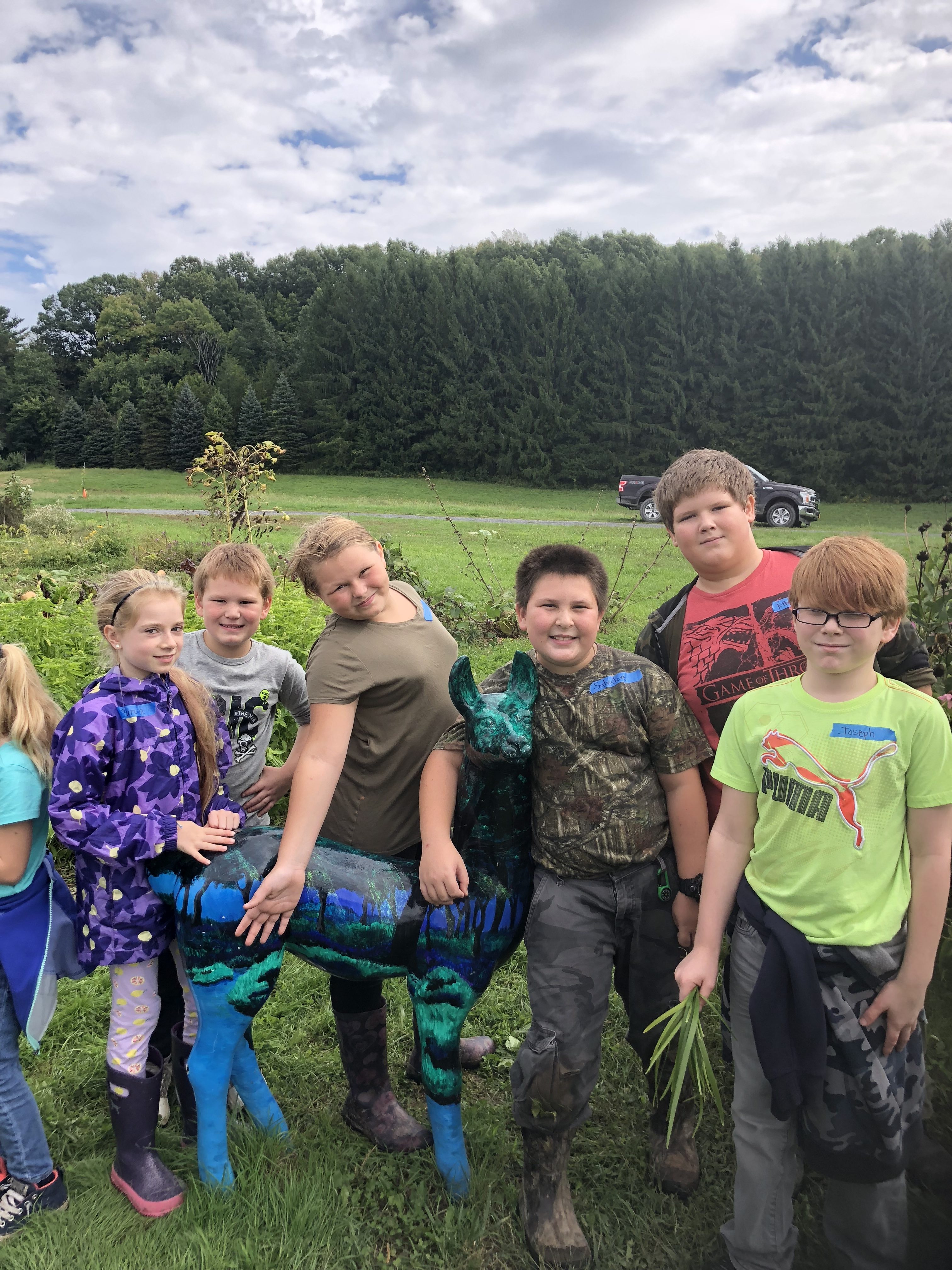 Right down the road from Katchkie Farm, first graders came from Ichabod Crane Elementary School to visit the farm. They plucked pesky cabbage moth caterpillars off of broccoli plants, harvested ground cherries, and worked as a team to maneuver wheelbarrows full of the season’s dead plants to the compost heap. We also cooked together to make a delicious Vegetable Soup and Spinach & Apple Salad from the seasonal bounty.