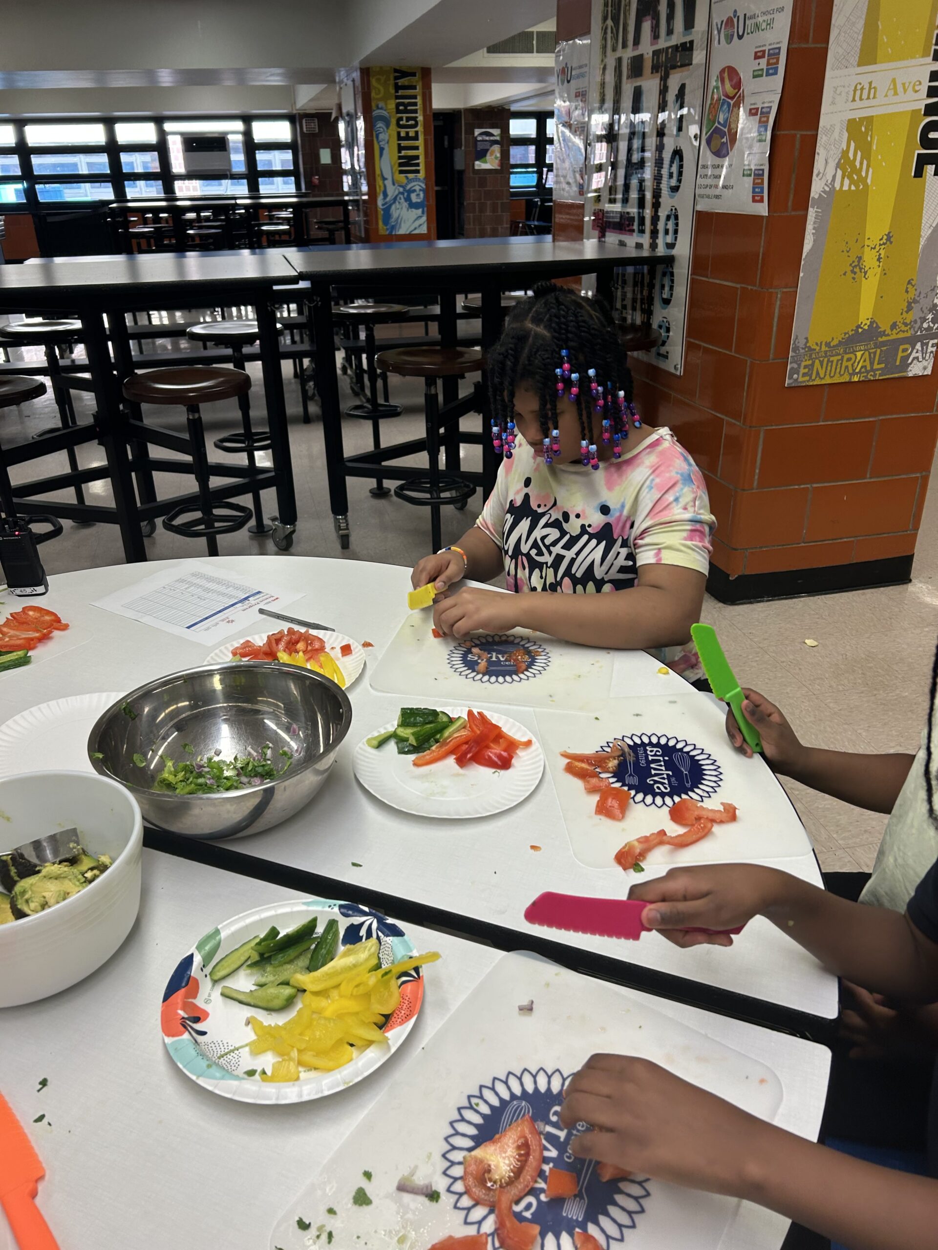 Over the past weeks, students have made everything from mango salsa and fruit summer rolls to kale caesar salad, guacamole, Thai citrus salad, and tzatziki with chickpea salad pita pockets. Their willingness to try new foods—and their excitement around hands-on tasks like juicing citrus or mixing sauces—has continued to grow.