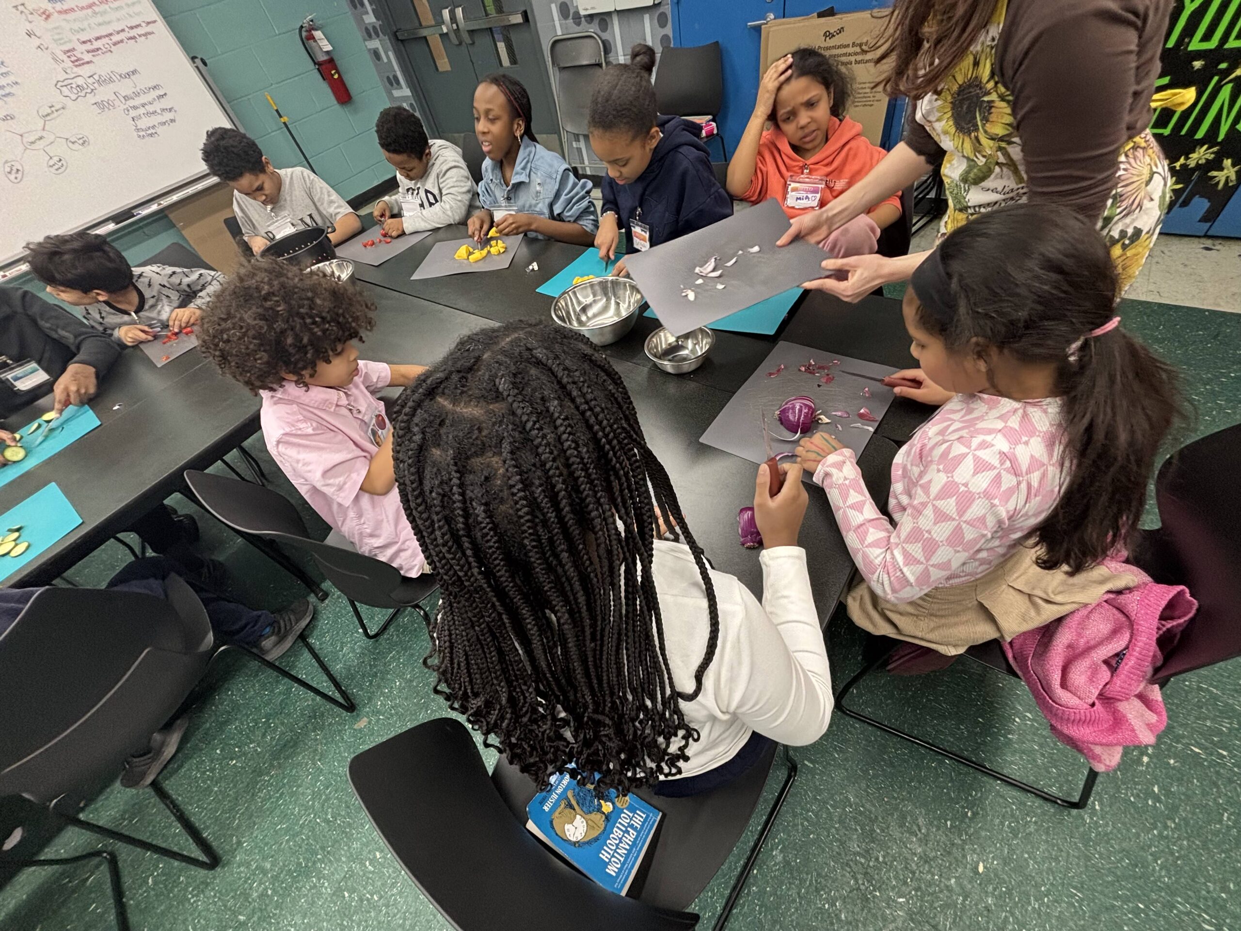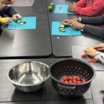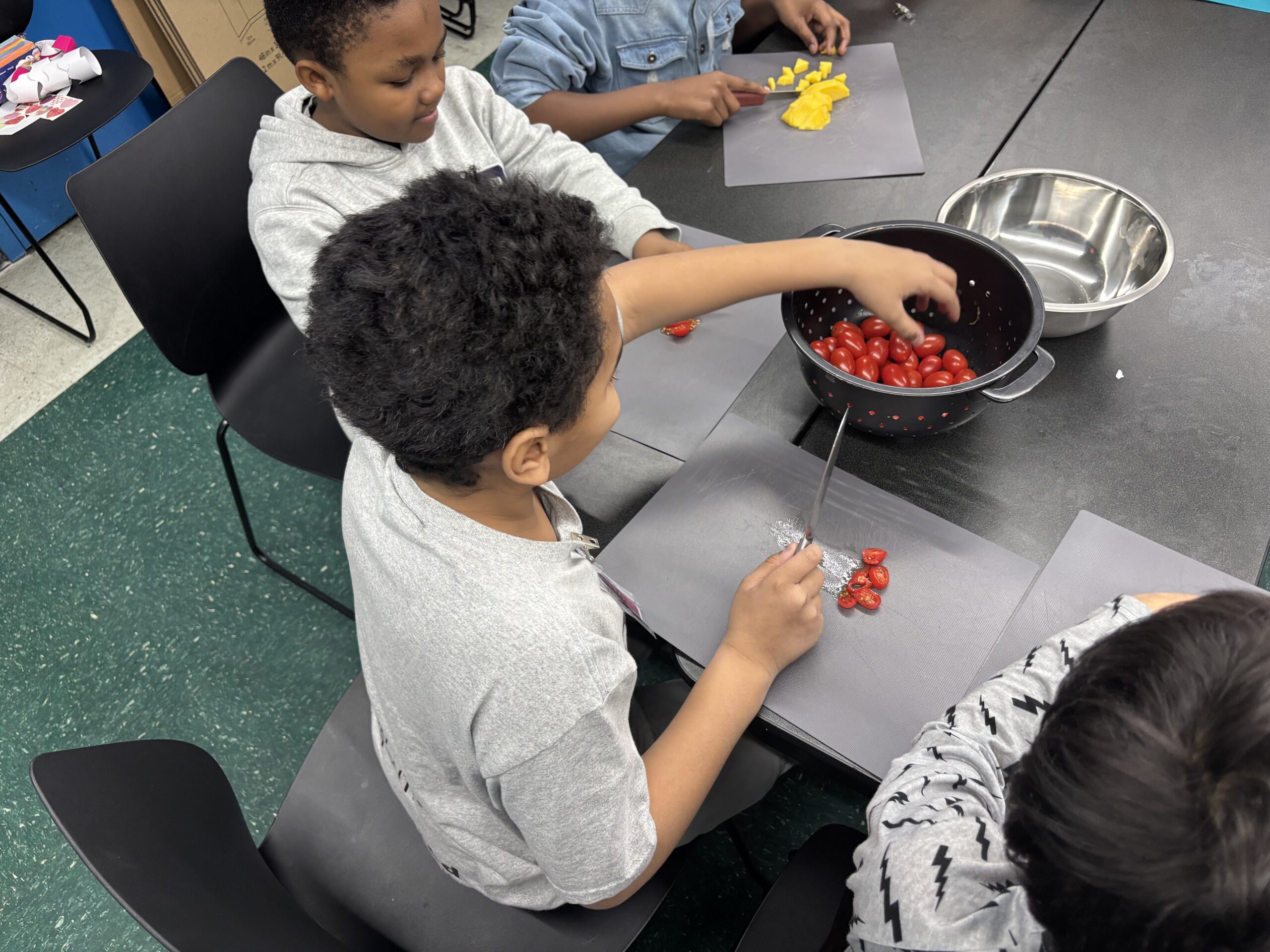 While regular TSC classes usually focus on individual age groups, this partnership looks a little different. Each session is split into two groups, with younger and older students making versions of the same recipes at different levels. While the recipes may be shared, the work looks different depending on the student. For some, it’s learning how to safely hold a knife. For others, it’s figuring out how to adjust a flavor or explain what they’re tasting. Across every class, the goal is the same: build real skills, and give students the confidence to use them.