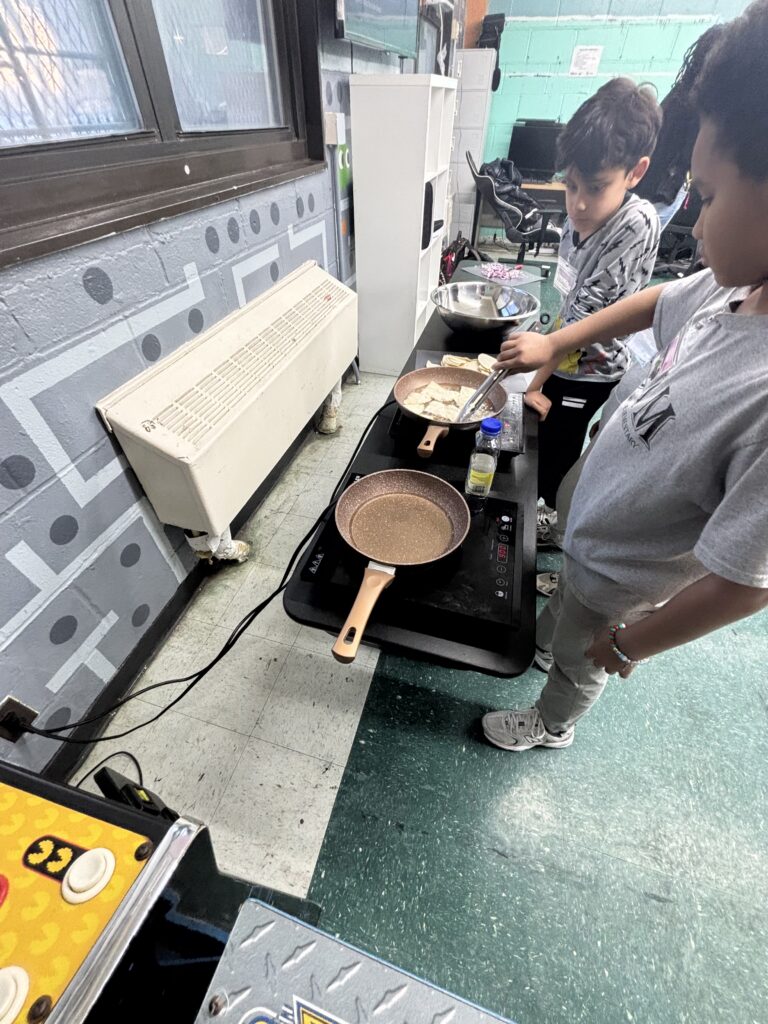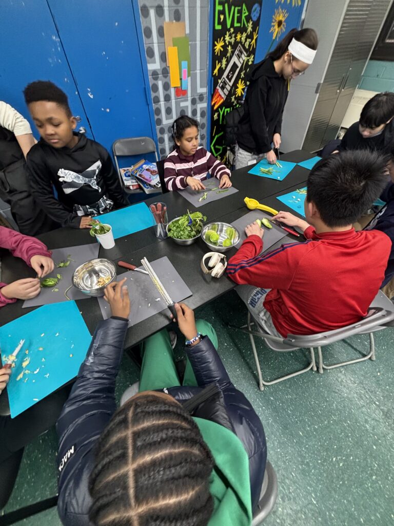 With older students, the work begins to shift from doing to explaining. While making a tahini dipping sauce, Eliana asked the group why they were adding honey. One student answered: “to make the garlic flavor less strong.” That kind of response shows something deeper than following a recipe. It shows that students are starting to identify flavors, understand how ingredients interact, and make decisions about how they want their food to taste. Just as importantly, they’re learning how to talk about it—what they like, what they don’t, and what they would change.