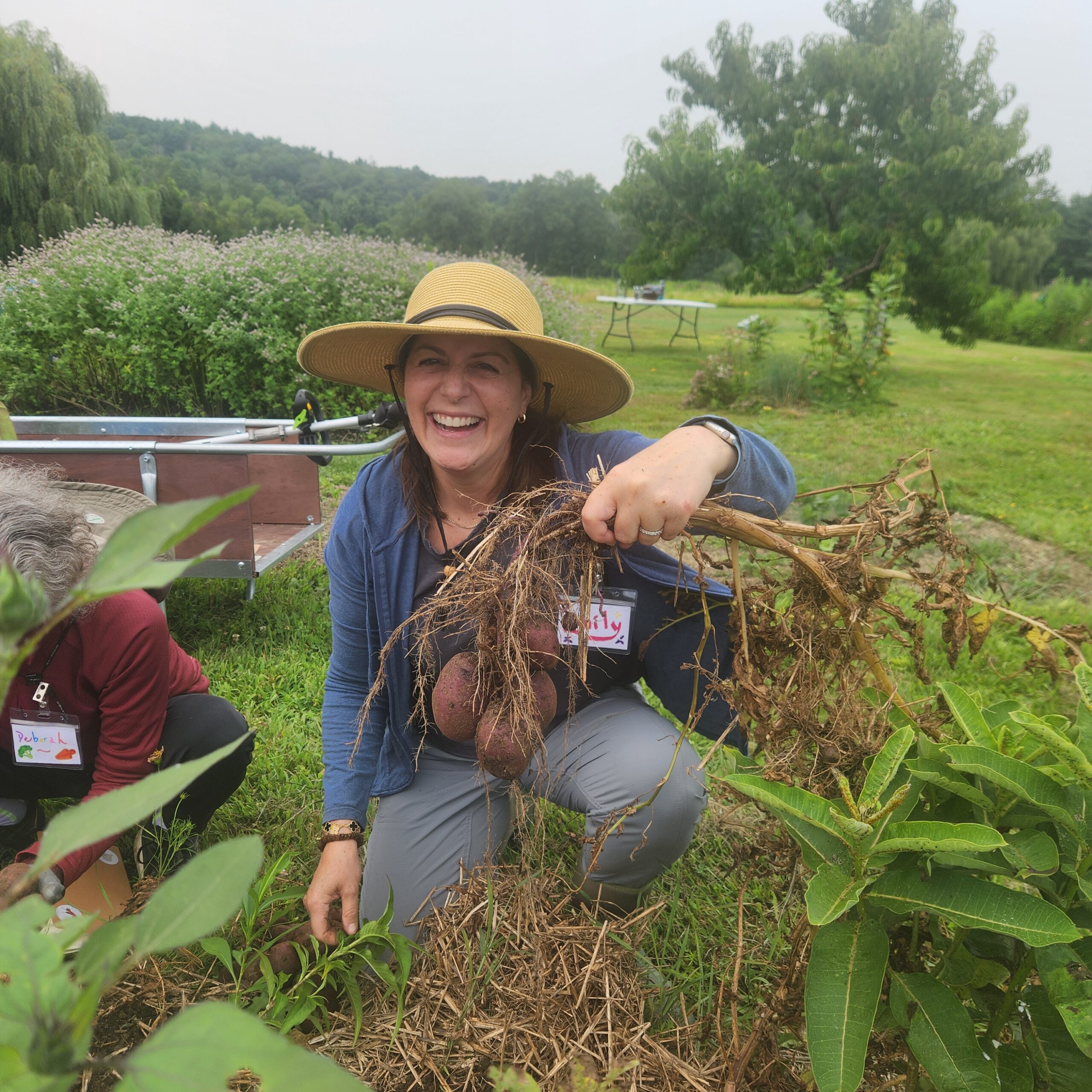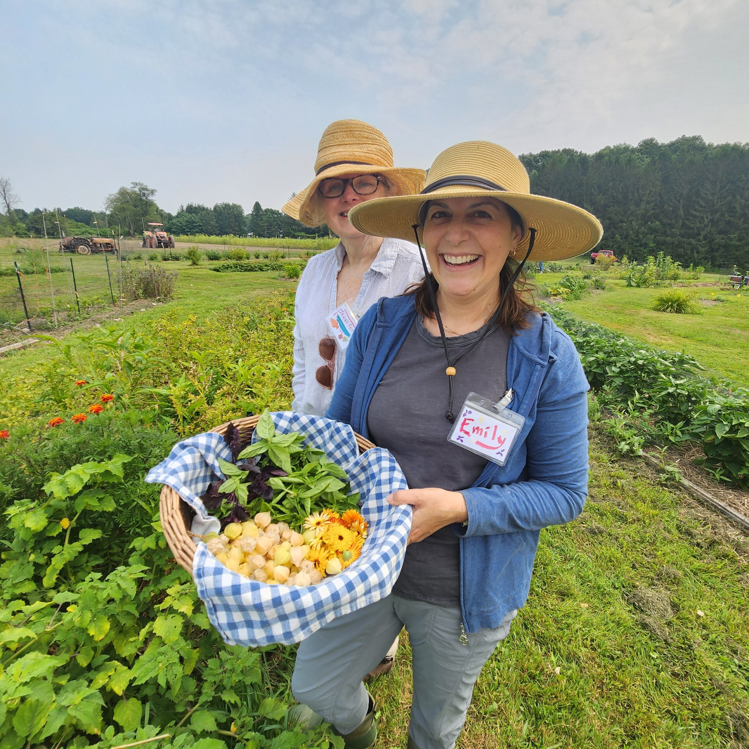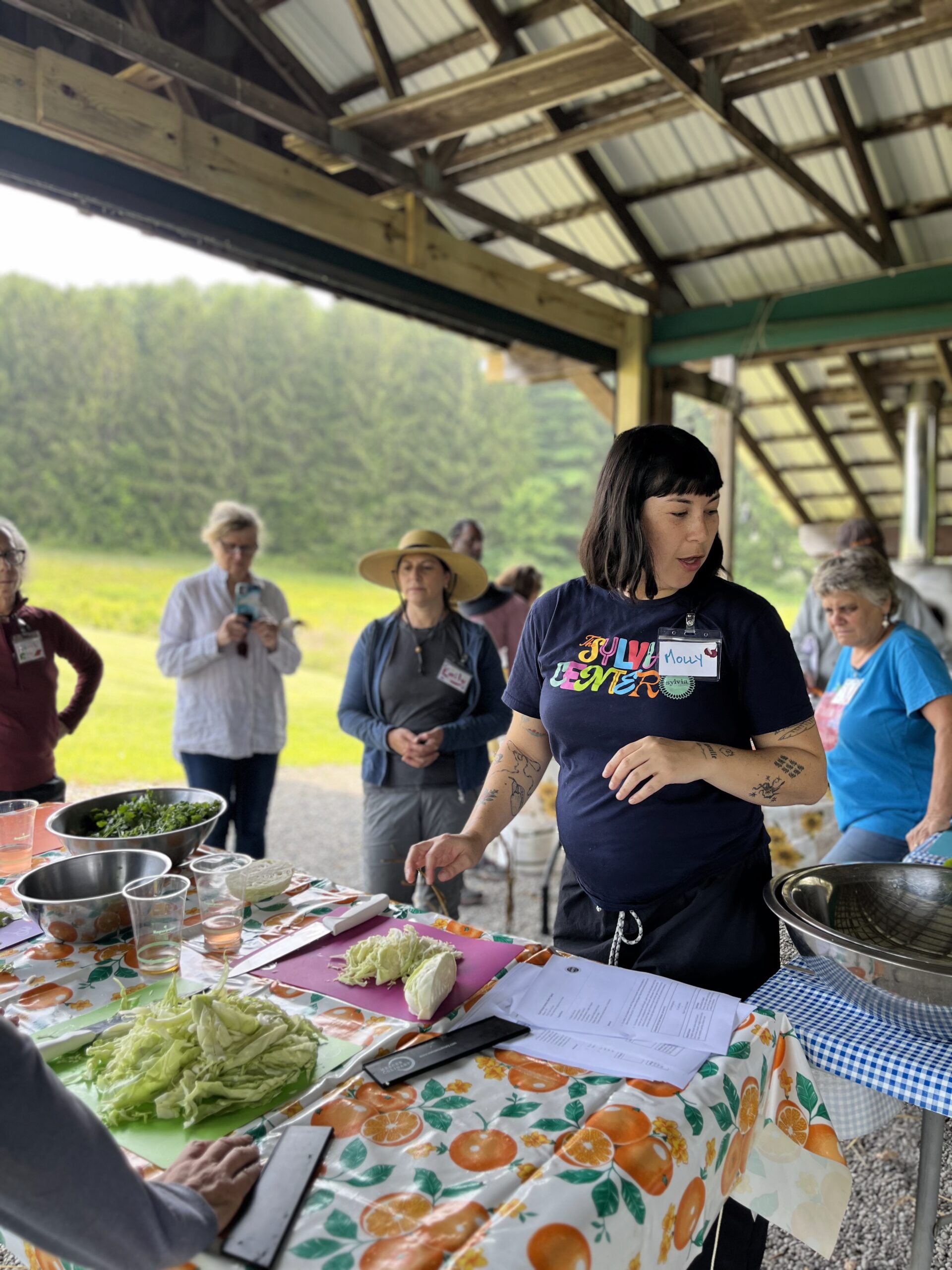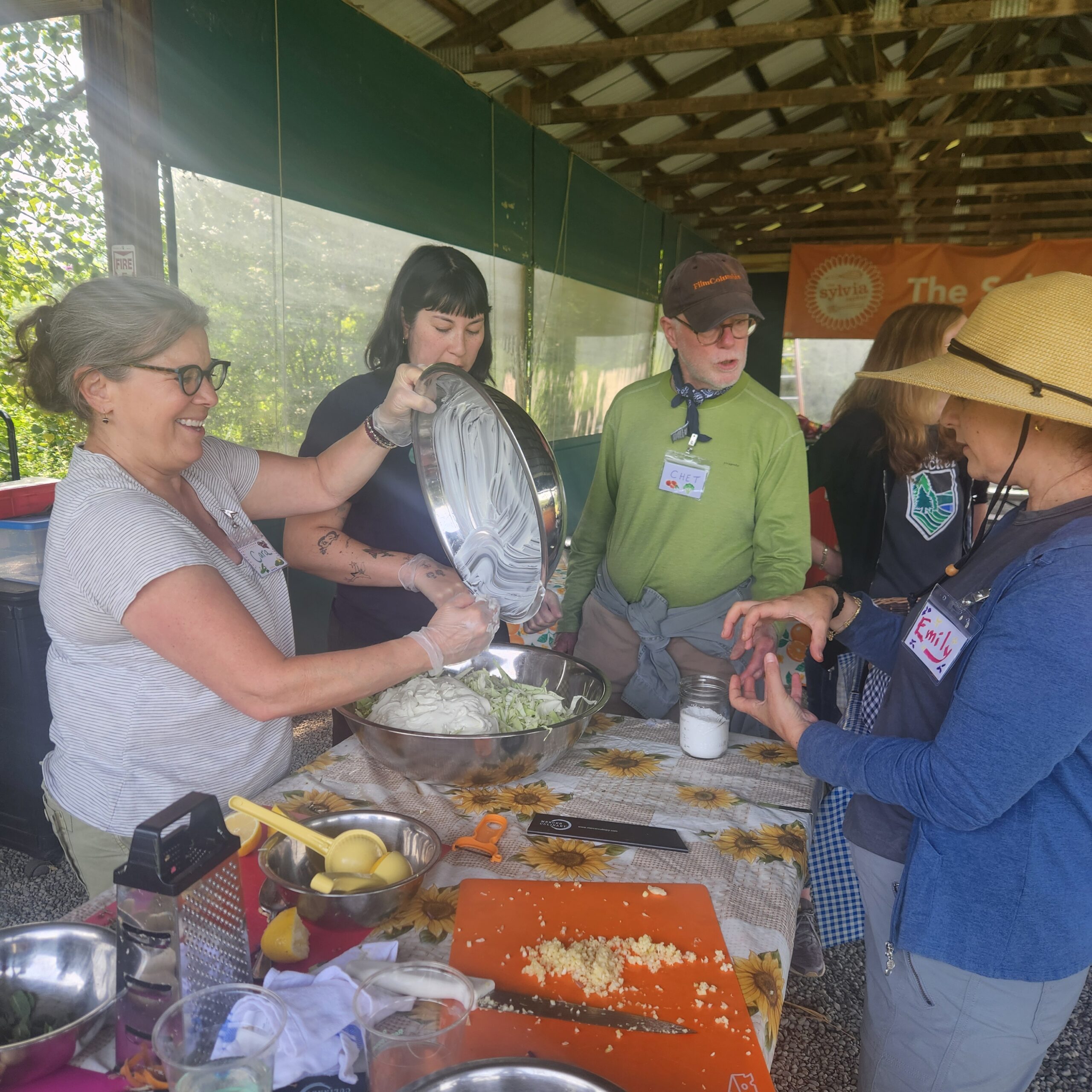 Each morning began gently—surrounded by sunflowers and buzzing pollinators—as campers settled in for a day of gardening, harvesting, and hands-on cooking. Led by Learning Garden Manager Julie Cerny and Upstate Programs Manager Molly Schneider, the group harvested husk cherries, carrots, potatoes, and beans straight from the soil. They admired the long-awaited Filderkraut cabbage (months in the making!), and talked through planting techniques, harvesting tips, and soil health (campers especially loved learning about the symbiotic relationship between legumes and nitrogen-fixing rhizobium bacteria—who knew?)