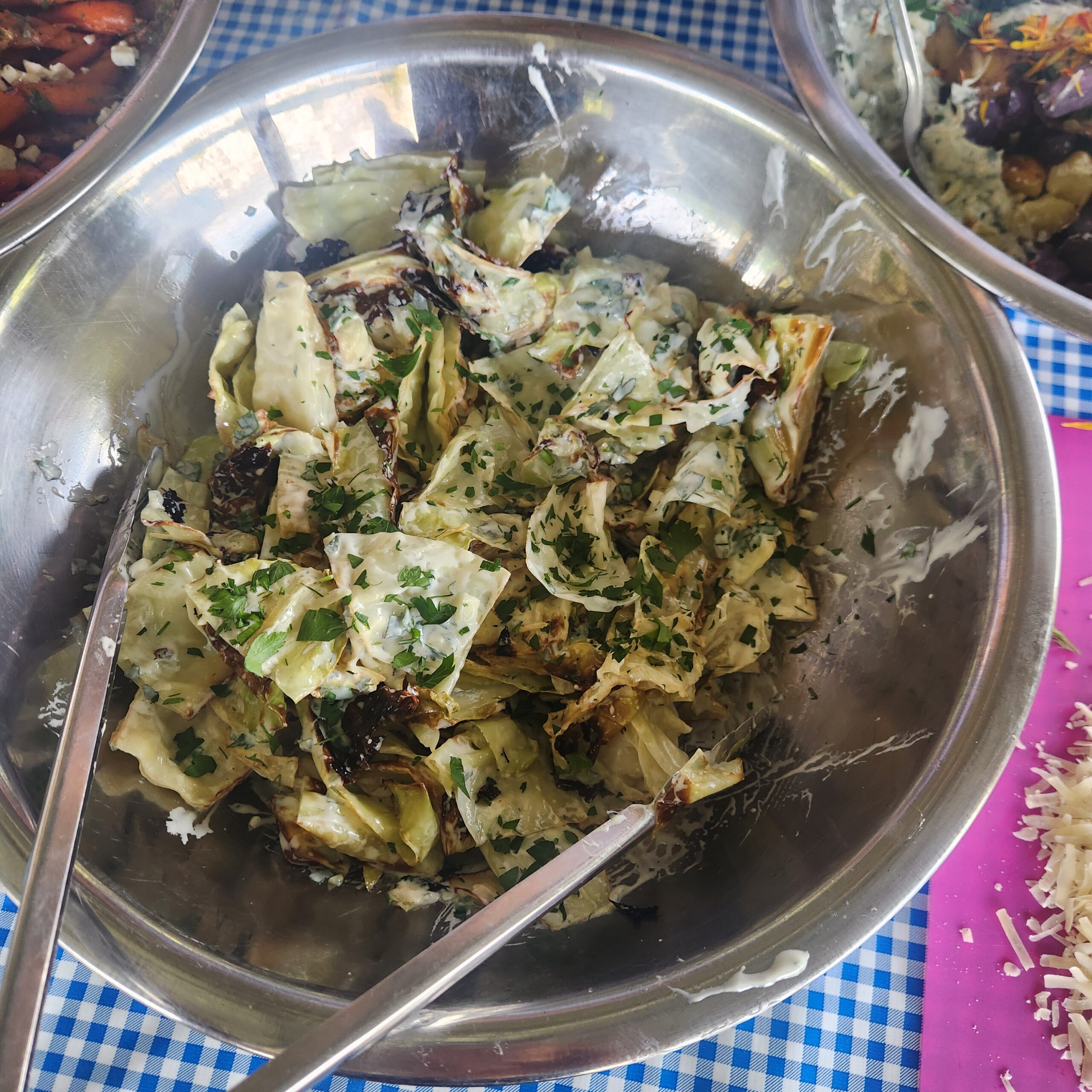 Campers got to see this relationship in action as they turned their harvested produce into a delicious lunch—made in the wood oven in our outdoor pavilion—of Roasted Carrots with Ayib & Awaze Vinaigrette, Herby Crispy Potatoes, Hari chutney, and Charred Cabbage with Raita & Goat Cheese. The group also spent time planting a variety of peas to be harvested and used in our fall programming—sugar snaps and Oregon Giants—before being invited back to the Learning Garden in September to see how their seedlings are faring, and how the passing seasons have changed the landscape of the garden. Before heading home, everyone filled bags from a harvest table piled high with fresh vegetables, to practice the skills they learned at the farm.
